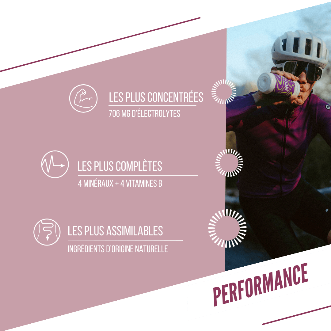 Complément en électrolytes BIO saveur mûre - cassis, sans sucres ajoutés. Formulé pour favoriser l’hydratation et l’équilibre minéral lors des efforts prolongés. Ultra digeste, parfait pour optimiser les performances sportives et compenser les pertes en électrolytes.