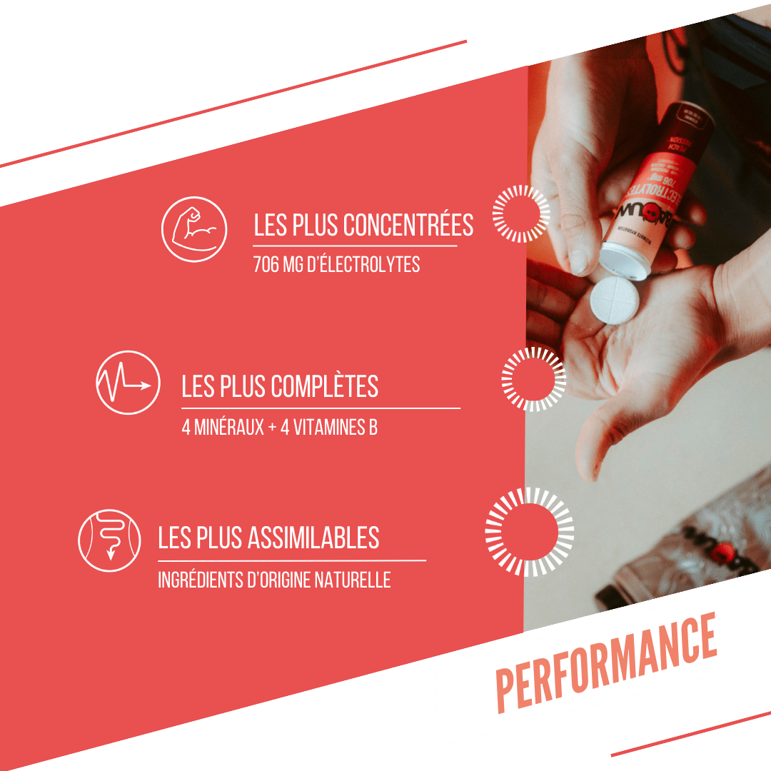 1 à 2 doses à diluer dans 500 ml d’eau, à consommer pendant l’effort ou en récupération.