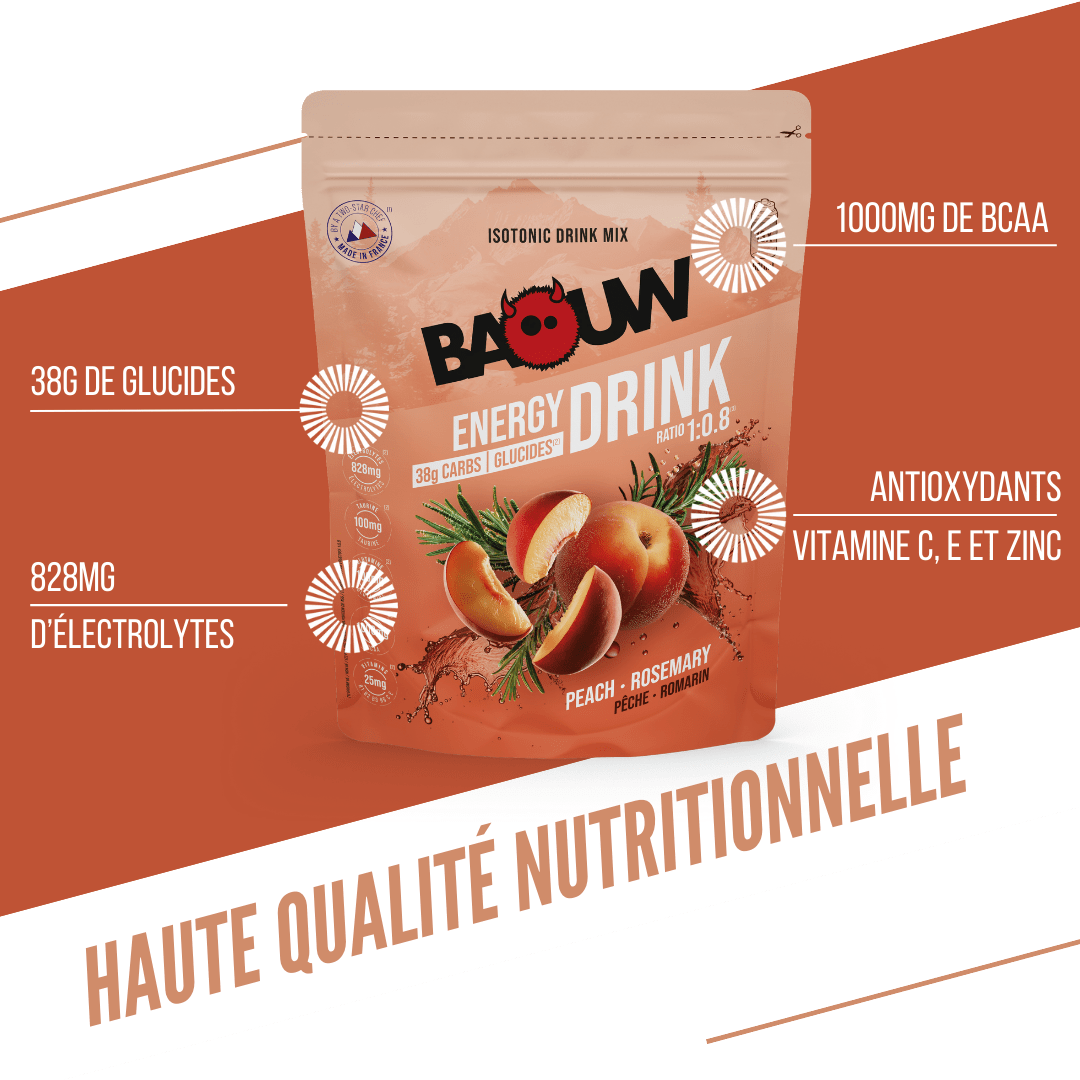 Apporte à ton corps tout ce dont il a besoin pendant l’effort : des bons glucides, des électrolytes, des BCAA, de la glutamine, de la taurine, des vitamines et des antioxydants.