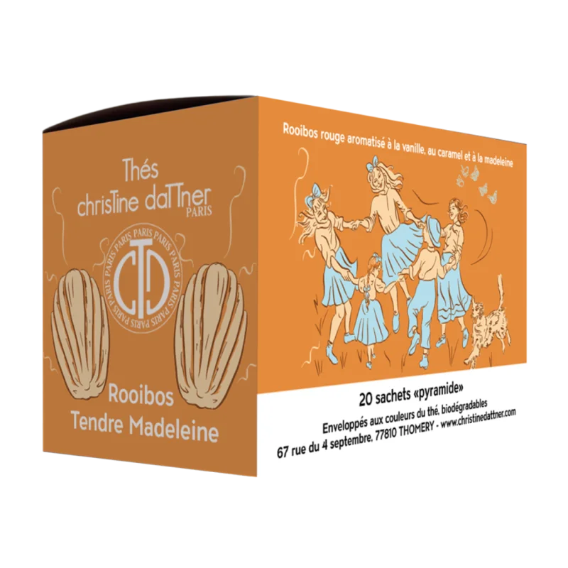 Une création gourmande et réconfortante qui mêle le rooibos d’Afrique du Sud aux notes douces et vanillées de la madeleine. Sans théine, cette infusion évoque les souvenirs d’enfance et se déguste à toute heure, notamment le soir pour un moment cocooning.